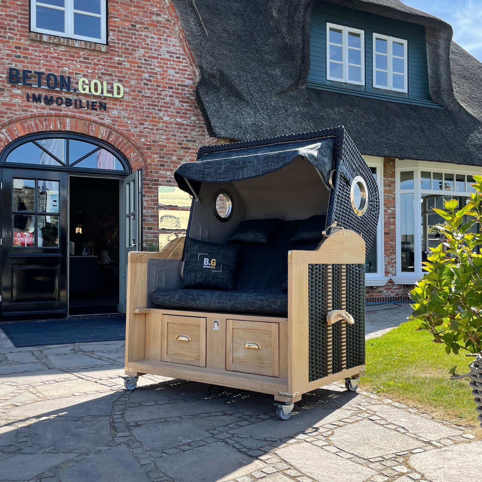 Dank unserer Partnerschaft mit Betongold haben Sie die Möglichkeit, unsere hochwertigen Strandkörbe hautnah zu erleben. Im exklusiven Showroom auf Sylt, direkt bei Betongold Immobilien, stehen unsere Ausstellungsstücke von April bis Oktober für Sie bereit.