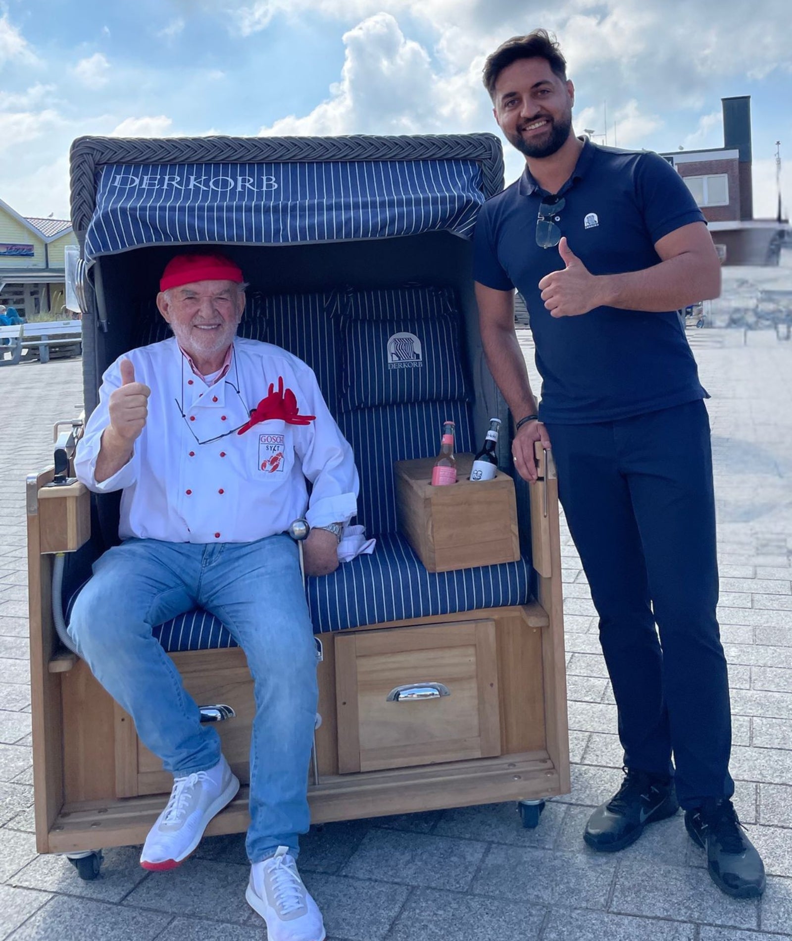Ein besonderer Moment: Jürgen Gosch von GOSCH SYLT hat unseren innovativen E-Korb getestet – eine Begegnung, die Tradition und Moderne verbindet.