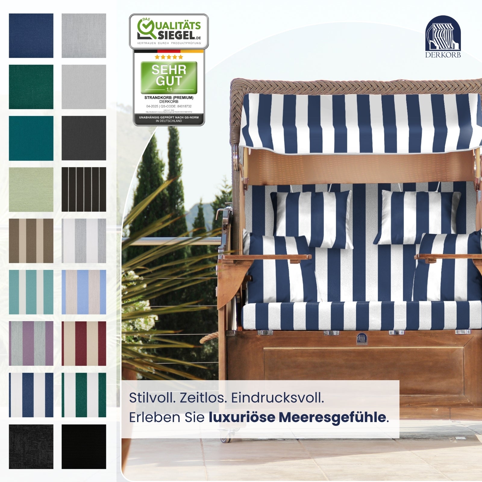 Gönnen Sie sich das Maximum an Luxus und Entspannung mit dem Premium Ostsee 2,5 Sitzer Strandkorb – Ihrem neuen Lieblingsplatz für stilvolle Erholung!