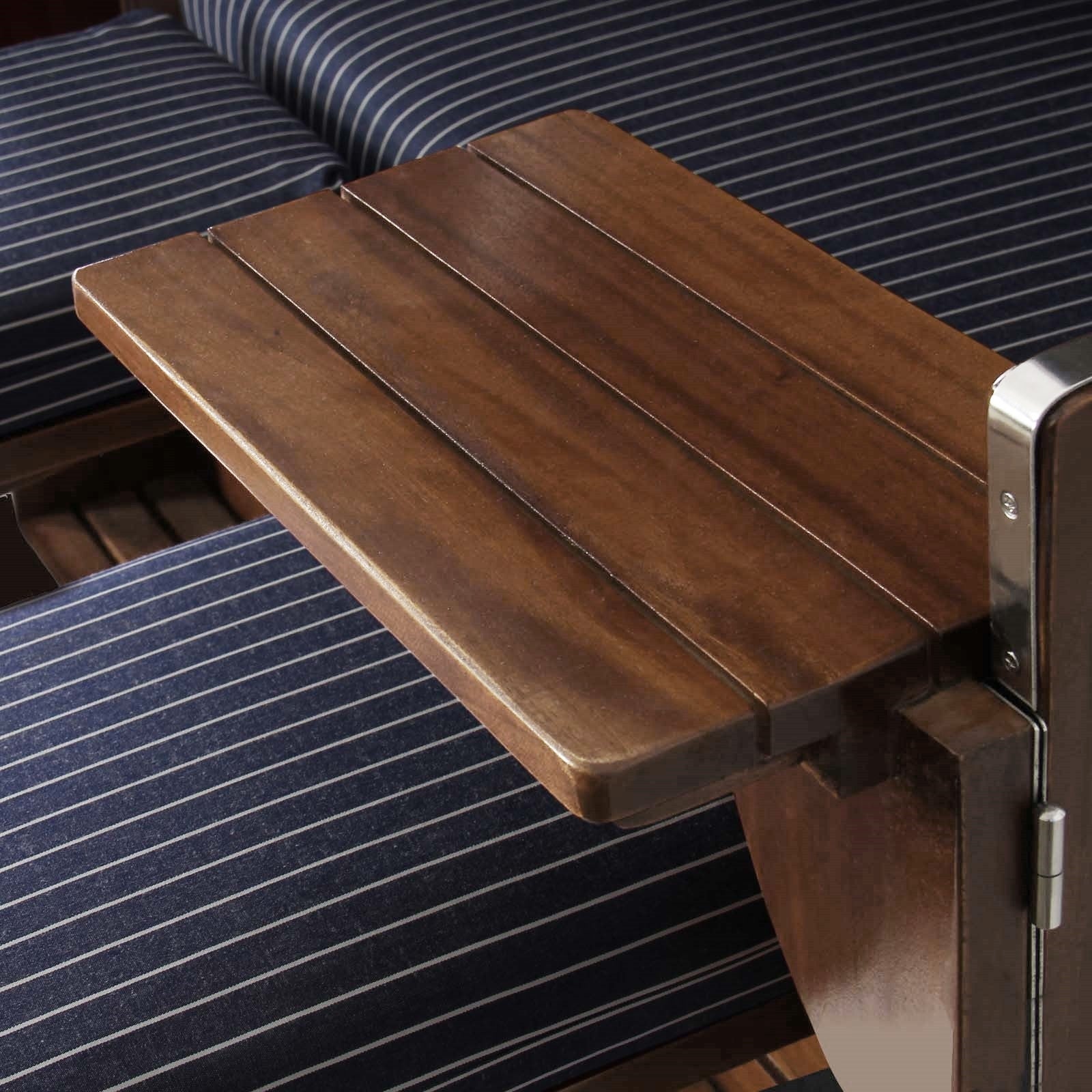 Durchdachtes Design – Schwenkbare Tische, maritime Bullaugen, einhängbare Fußstützen und wasserabweisende Bezüge.