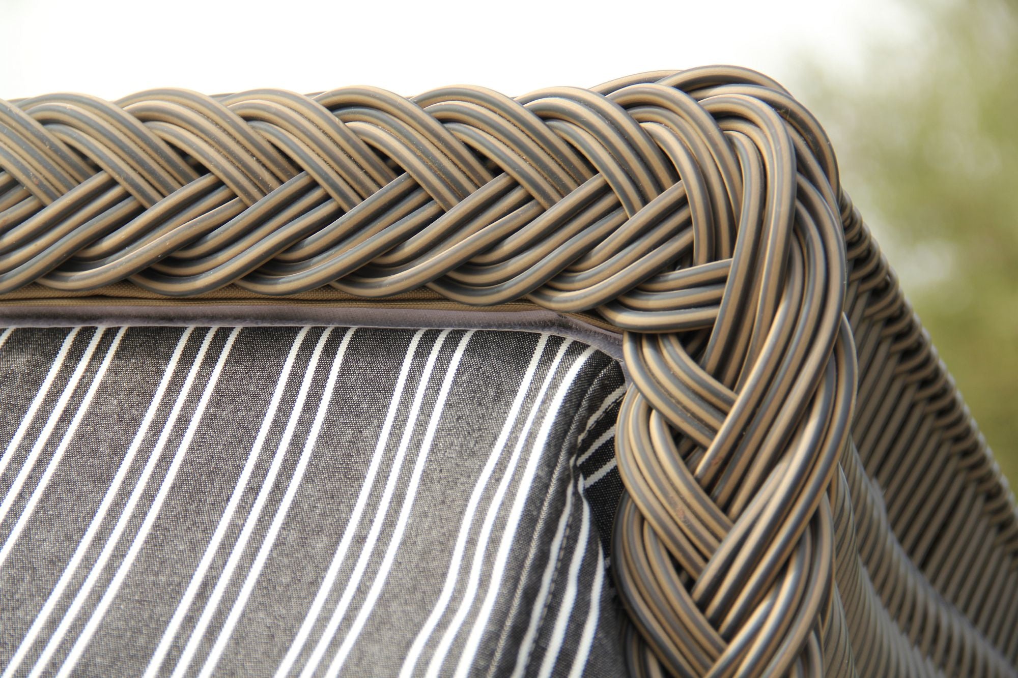 Die feinen Nuancen in Farbe, Ton und Textur verleihen Ihrem Strandkorb eine edle, moderne Ausstrahlung. Dank des extra dicken Gewebes bietet er außergewöhnlichen Sitzkomfort und eine besonders angenehme Haptik.